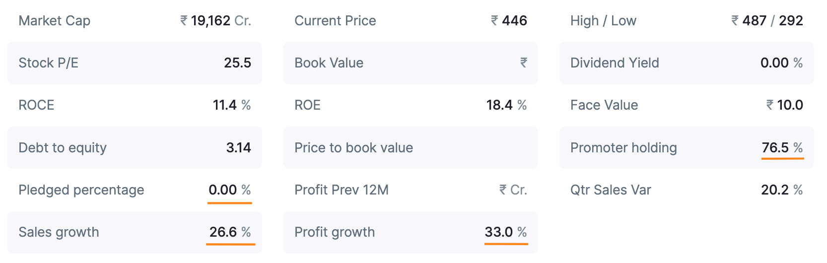 The company’s ROCE is 2nd highest among the peers at 11.36%.