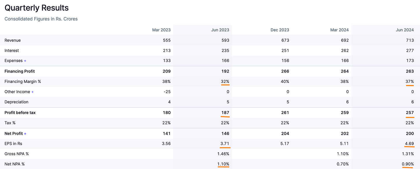 The company has a consistent track record of AUM and profit growth, and a focus on using technology to scale and and control their NPAs.