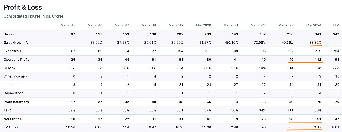 The operating profit increased by 228% on account of increased sales and operating margins.