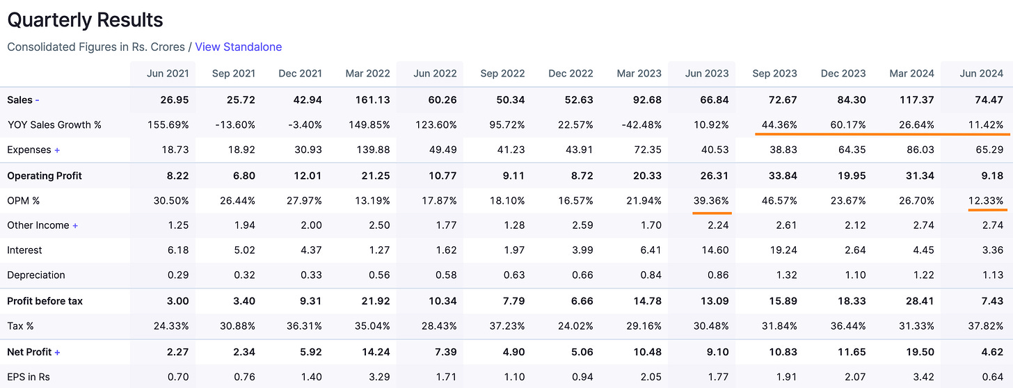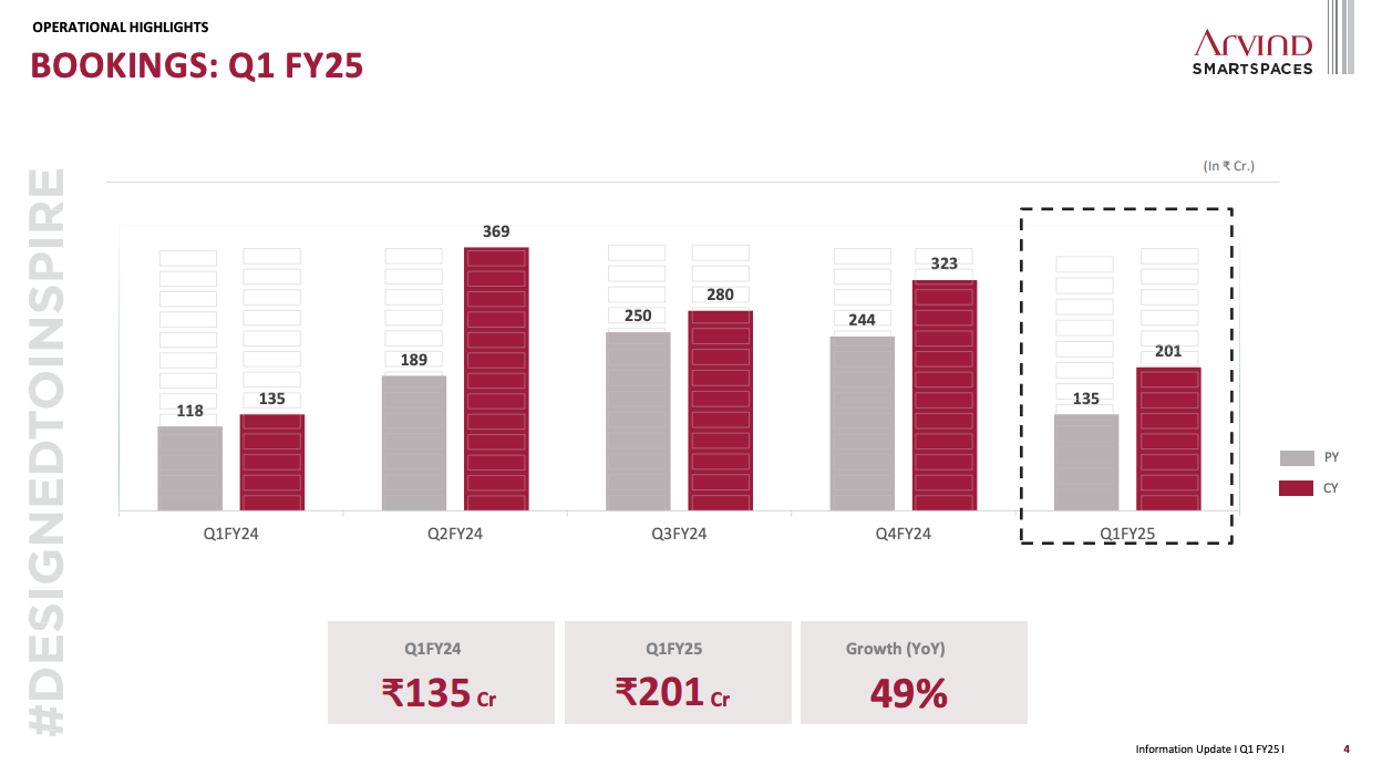 The current quarter shows lower EBITDA and PAT margins due to periodical costs and lower booking values compared to budgeted expectations.