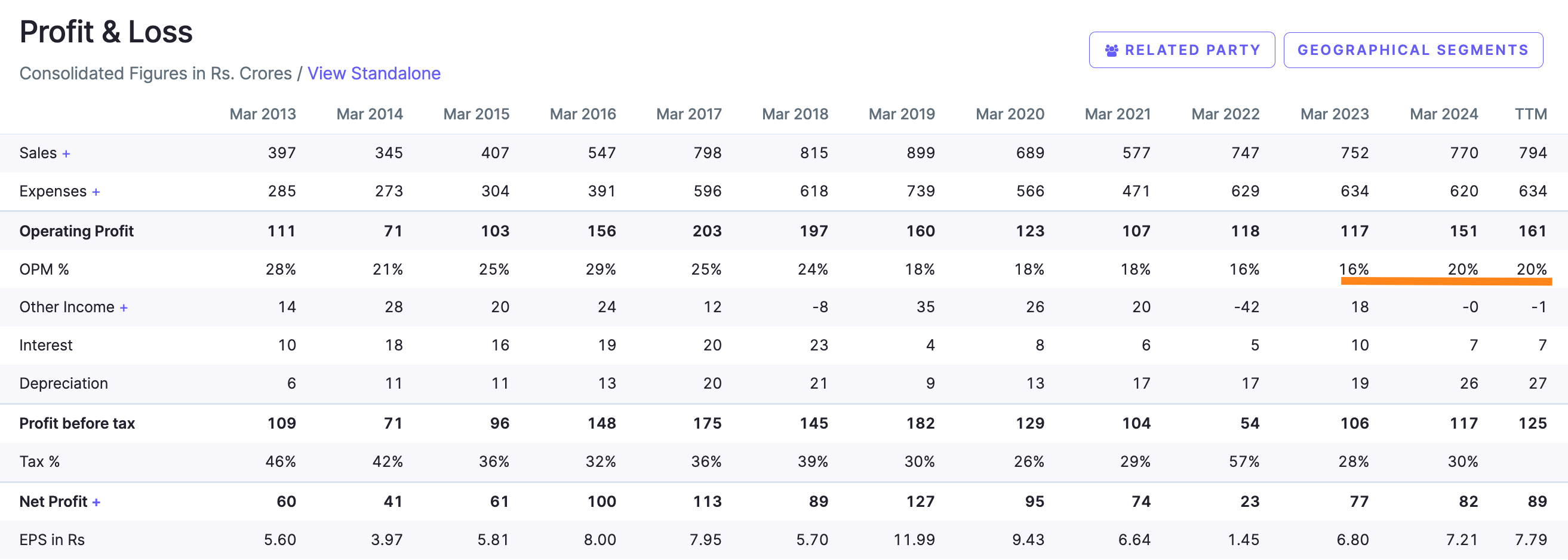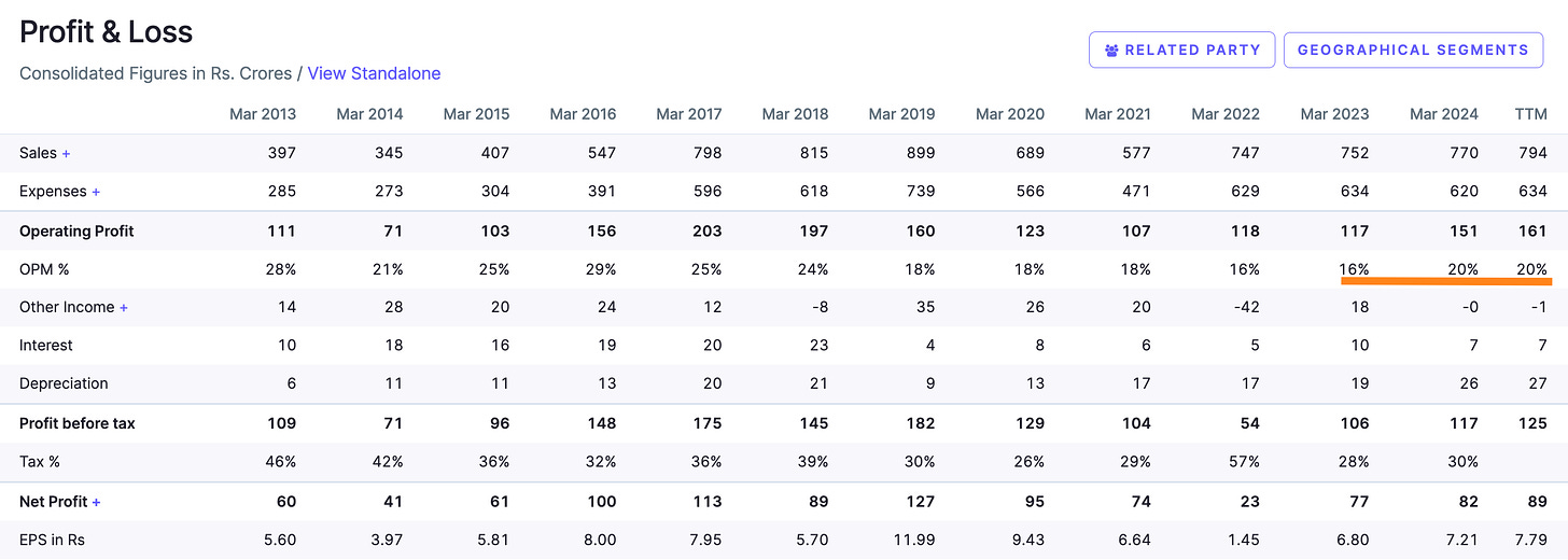 The company reported a 25% improvement in profit margins in FY 2024 compared to the last financial year (16% → 20%).