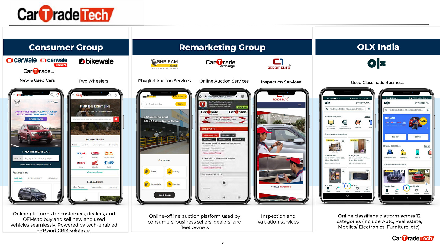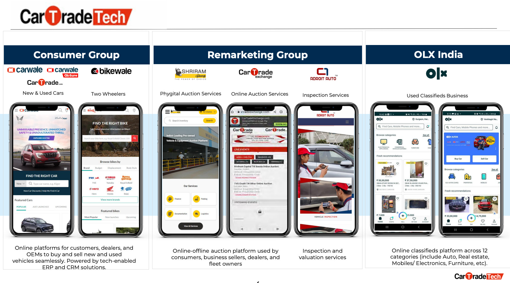 They operate 3 business groups - Consumer group, Remarketing group and Used classifieds business(Olx India).