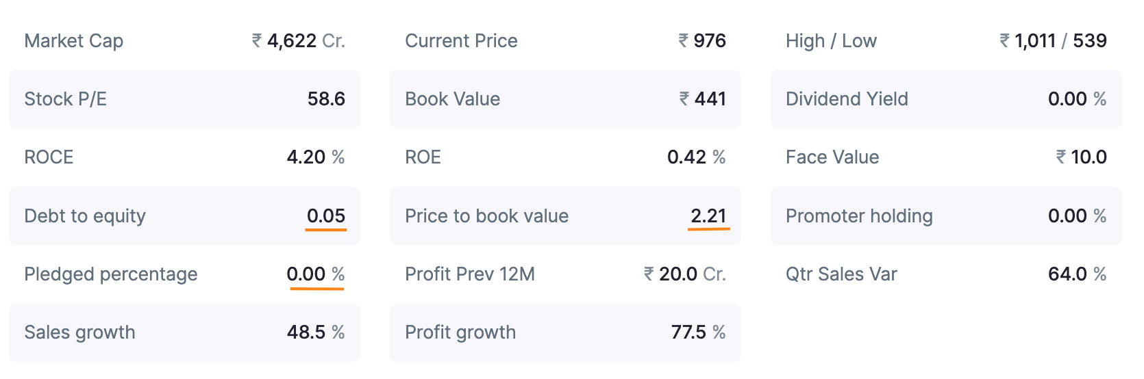 The pledged percentage is 0% and the debt-to-equity is 0.05.