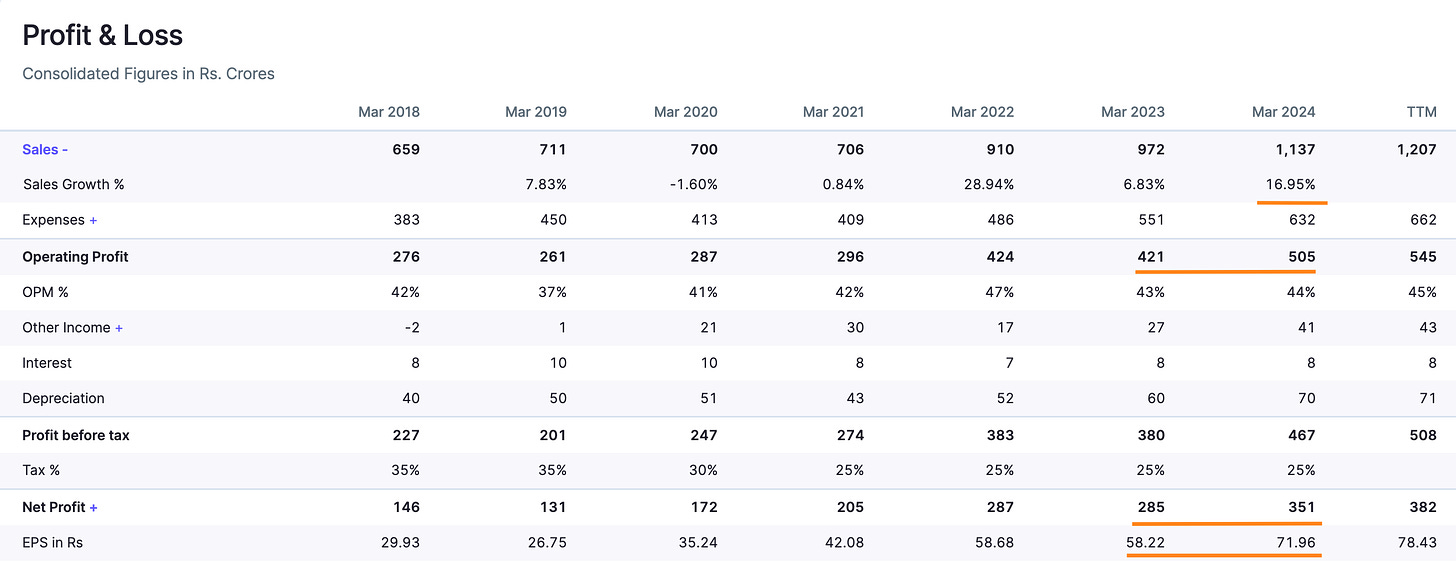 The company reported a sales growth of 16.95%, and operating profit growth of 19.95%.