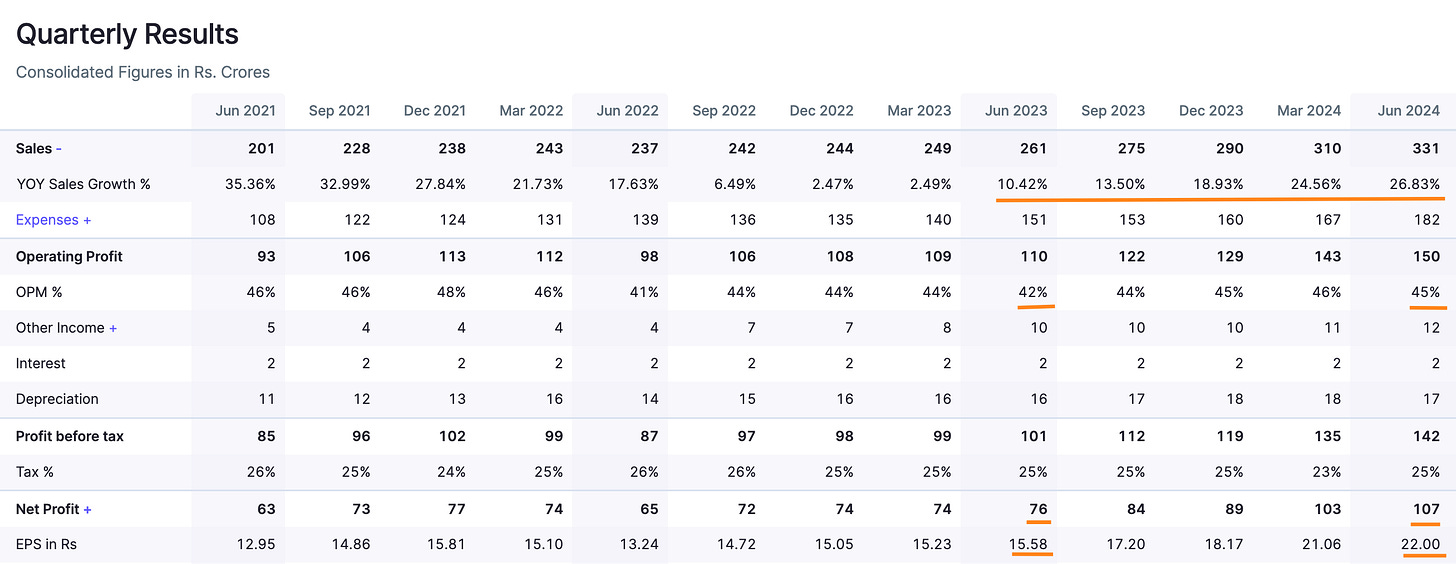 The company has reported significant sales growth of 26.83%, and a consistent double-digit sales growth track record overall.