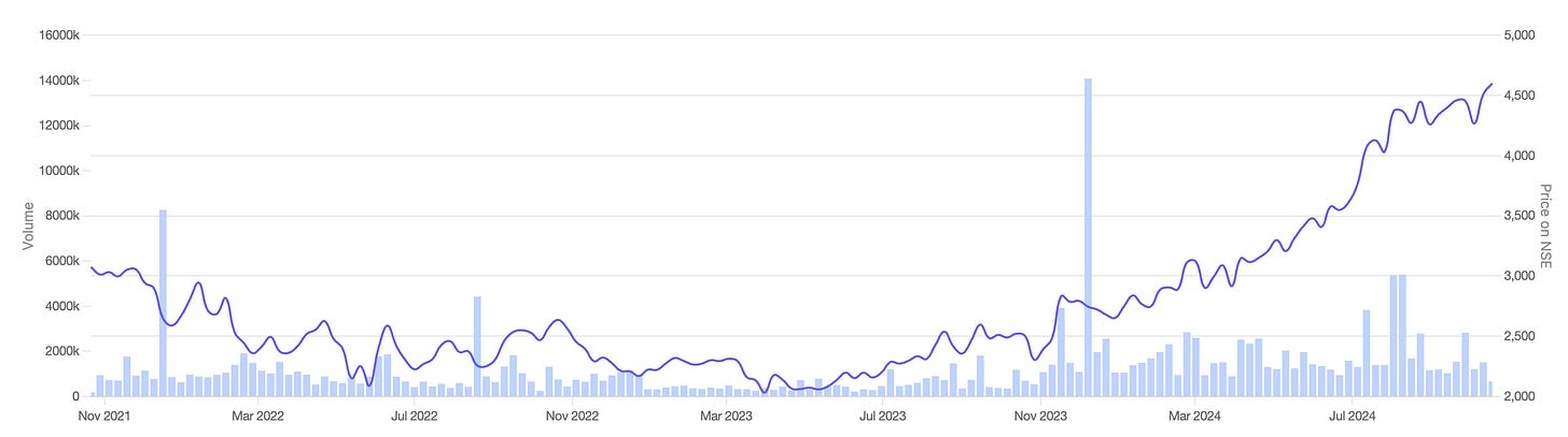Last closing price(NSE:CAMS) - ₹4600.6 (as of 14-Oct-2024)