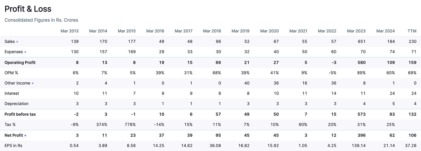 The overall sales growth in FY 2024 was negative at -72%, but the trailing-twelve-month(TTM) numbers are showing a turnaround.
