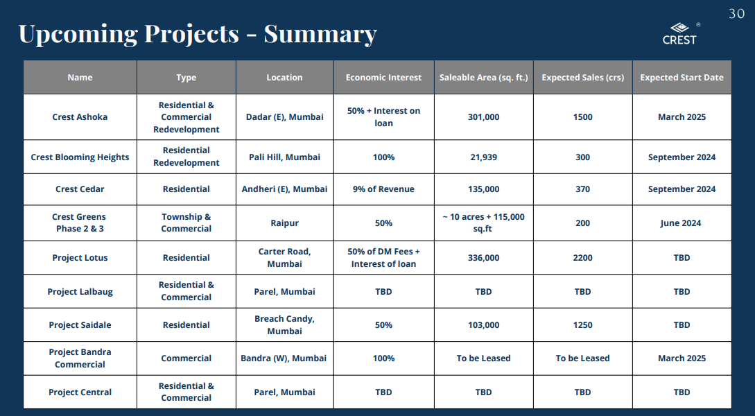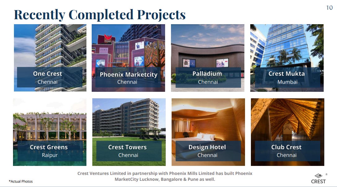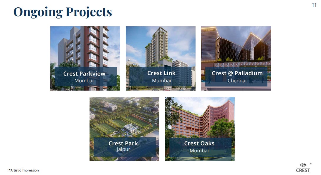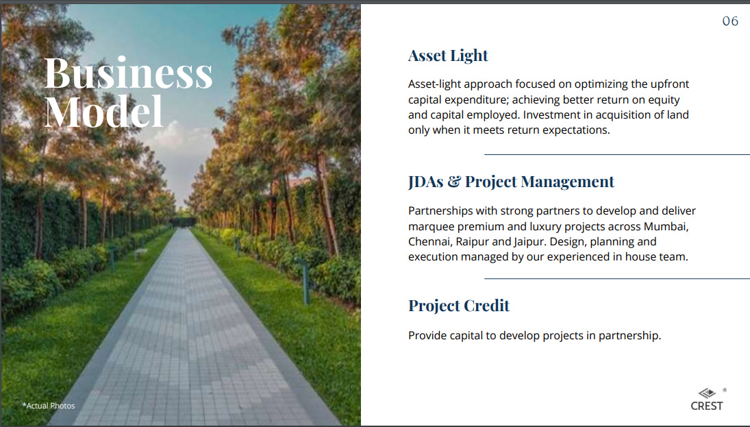 Crest Ventures Ltd, based in Mumbai, is a RBI registered NBFC. The company operates two primary business verticals - real estate and financial services/credit with a track record of 20+ years and a healthy projects pipeline.