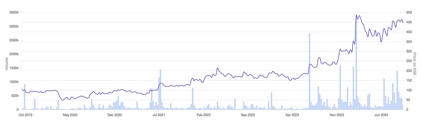 Last closing price(NSE:CREST) - ₹448.65 (as on 11-Sep-2024)