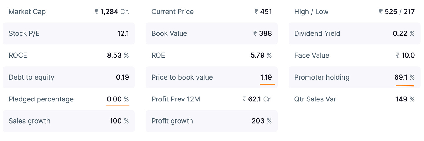 The price to book value is at 1.19 for the company, where as for the peers it is in the range of 2 to 5.