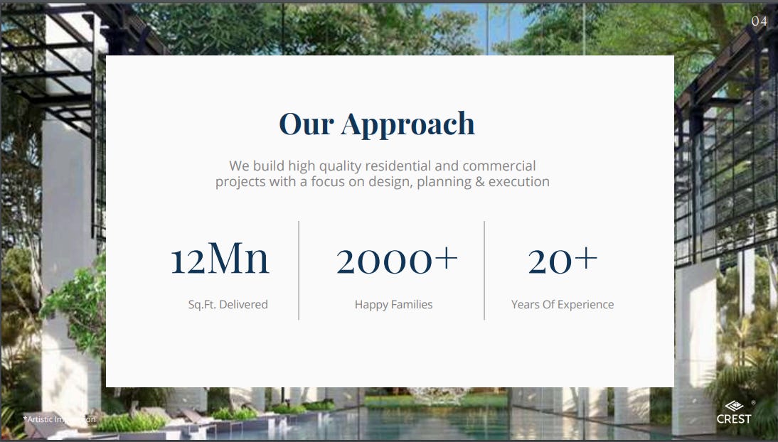 Crest Ventures Ltd, based in Mumbai, is a RBI registered NBFC. The company operates two primary business verticals - Real estate and financial services/credit with a track record of 20+ years.