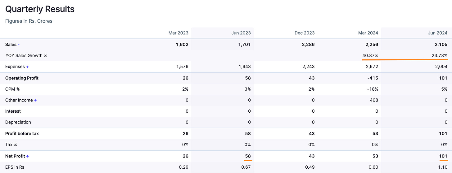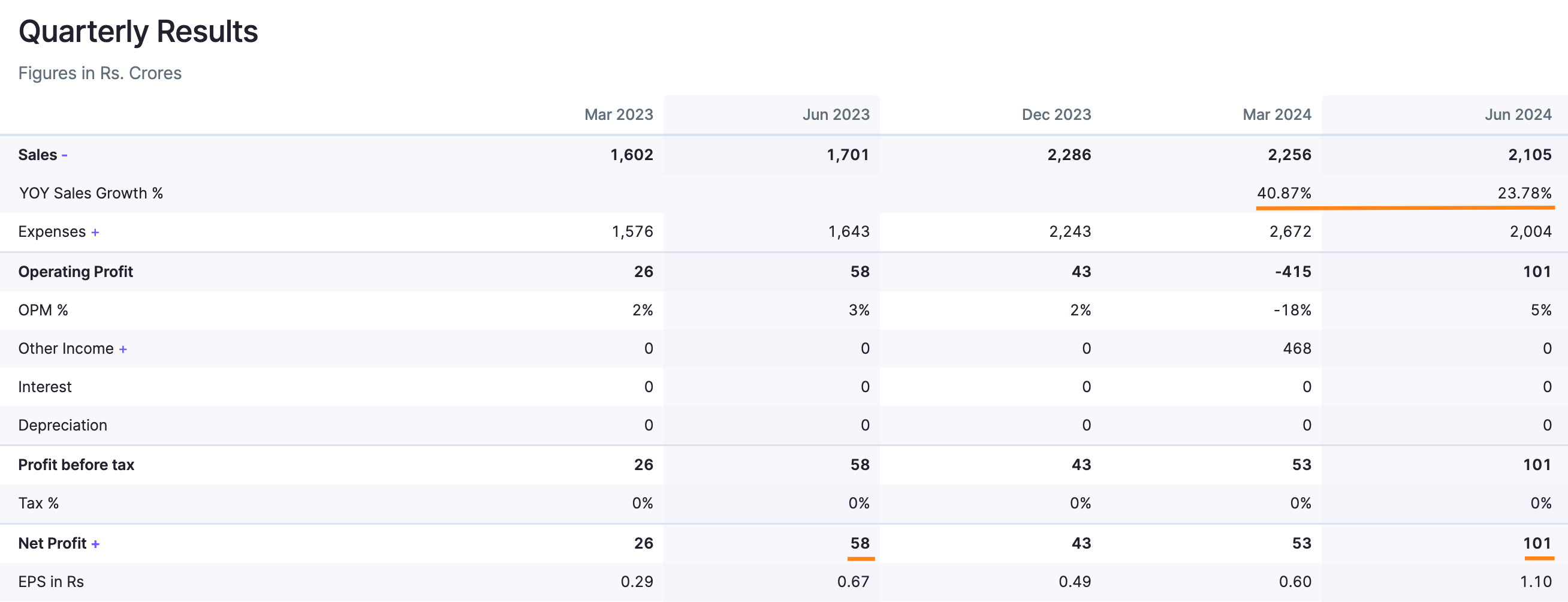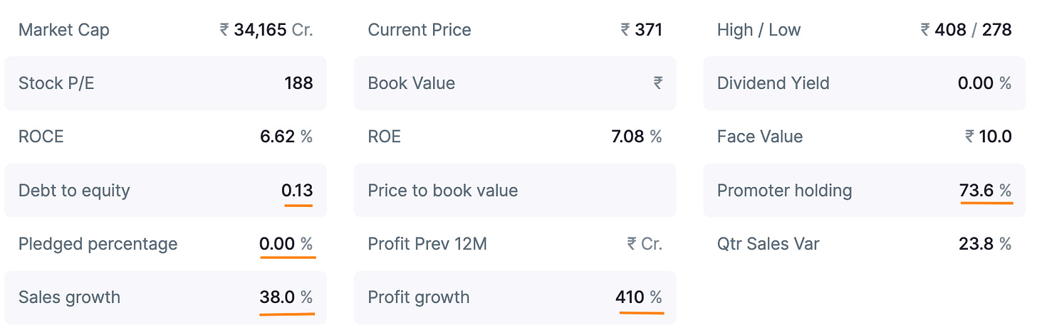 The company has the highest sales growth rate (37.95%) and profit growth rate(410%) among it’s peers.