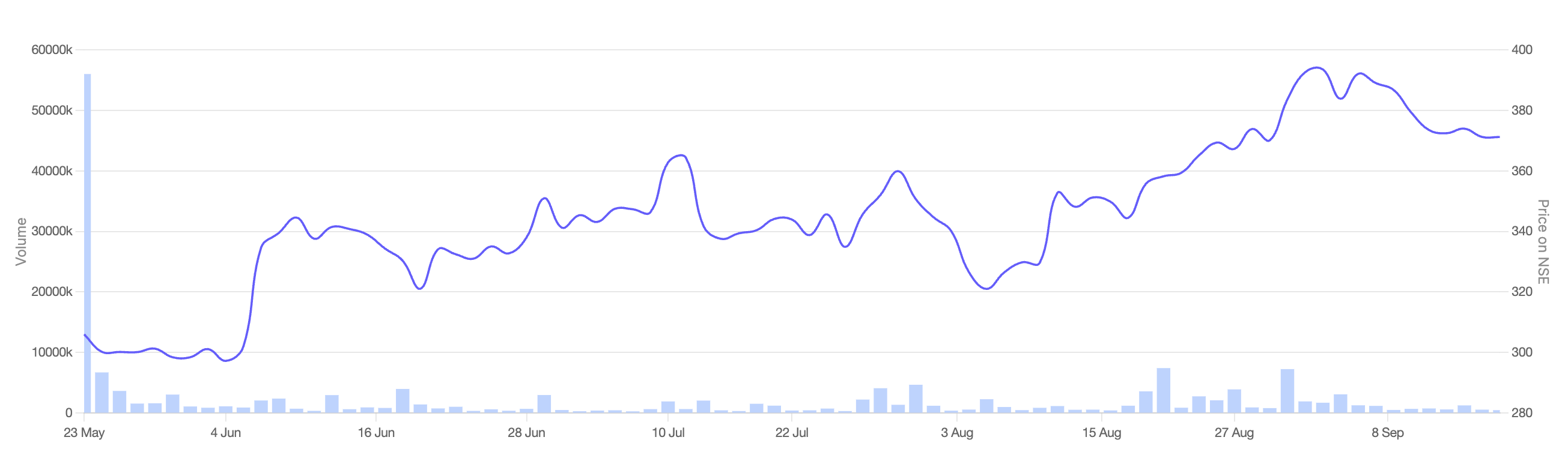 Last closing price(NSE:GODIGIT) - ₹371.25 (as on 17-Sep-2024)