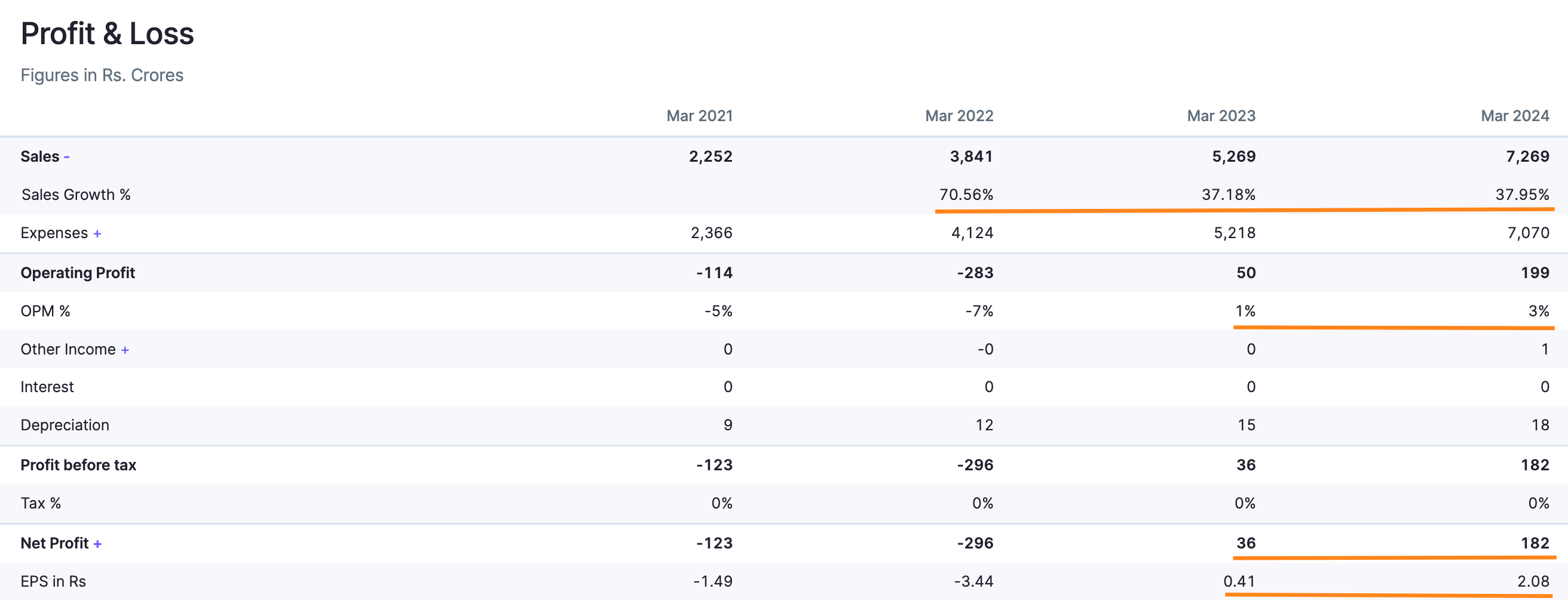 The company has had a high annual sales growth rate with +37.95% in the last financial year.