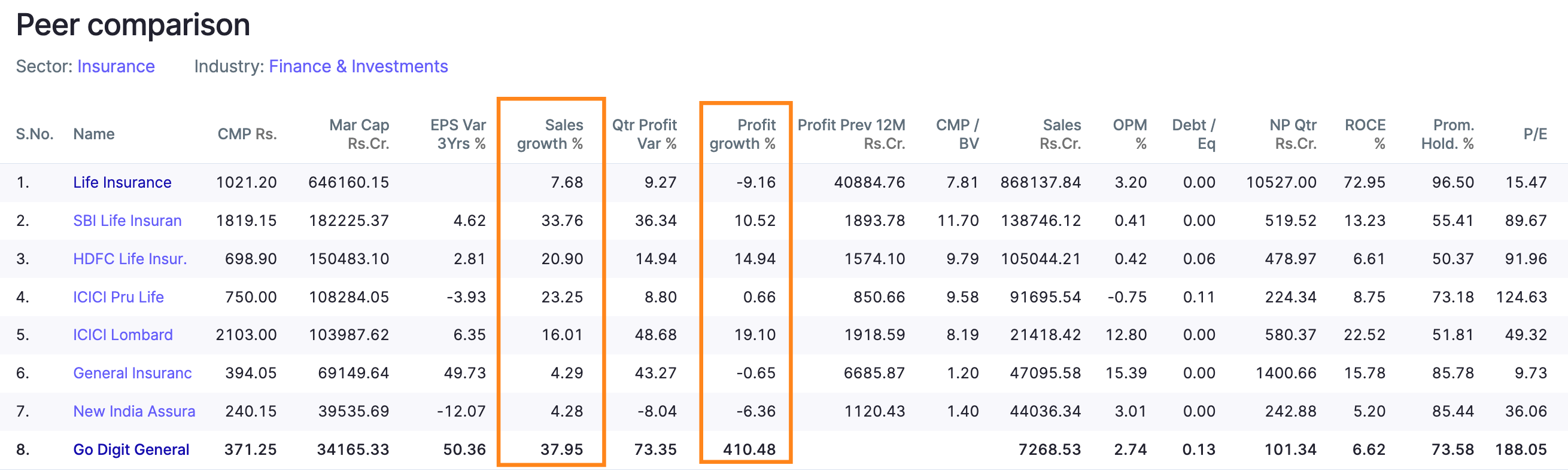 The company has reported the highest sales growth rate (37.95%) and profit growth rate(410%) among it’s peers in the insurance sector.