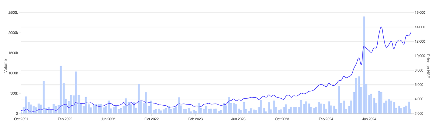 Last closing price(NSE:POWERINDIA) - ₹13346.7(as on 25-Sep-2024)