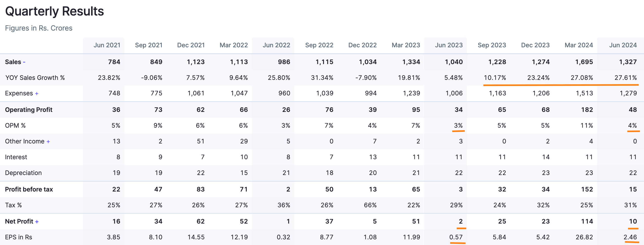 The company has had a turn-around performance in terms of sales growth with 23%+ sales growth in the last 3 quarters.