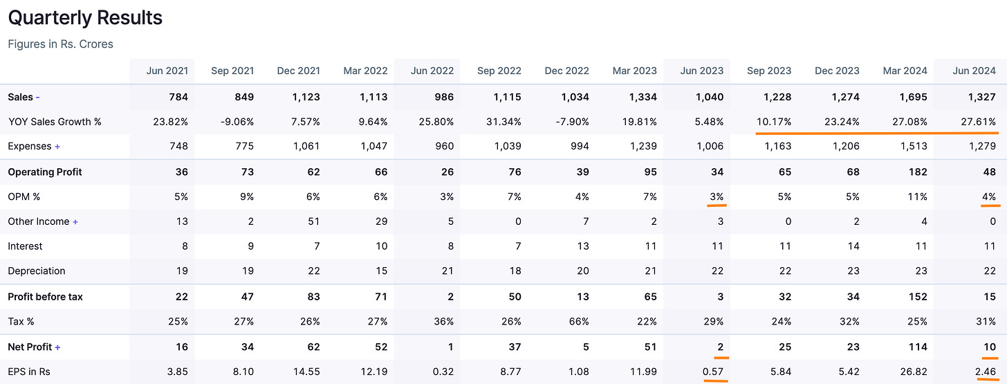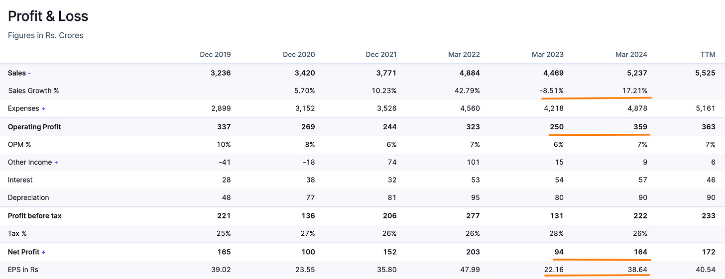 The company posted negative -8.51% sales growth in FY 2023, and posted a turn-around with +17.21% growth in FY 2024.