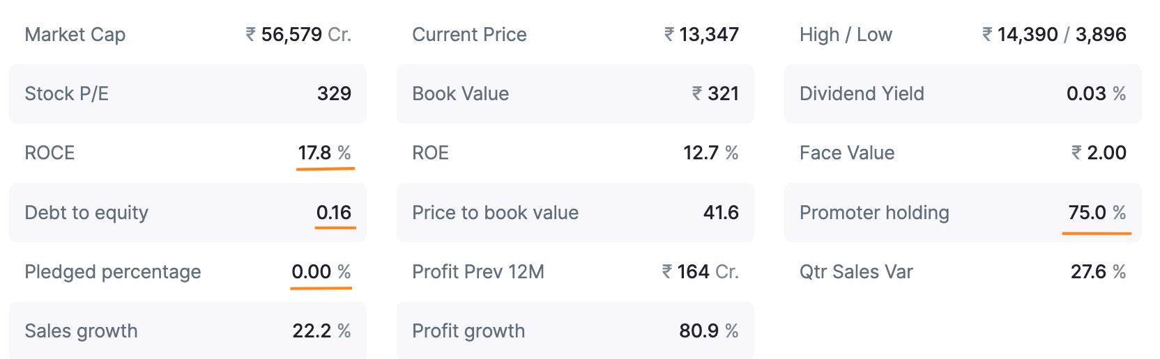 The debt-to-equity is under control at 0.16, with zero long term borrowings.