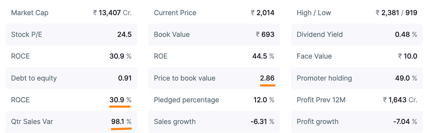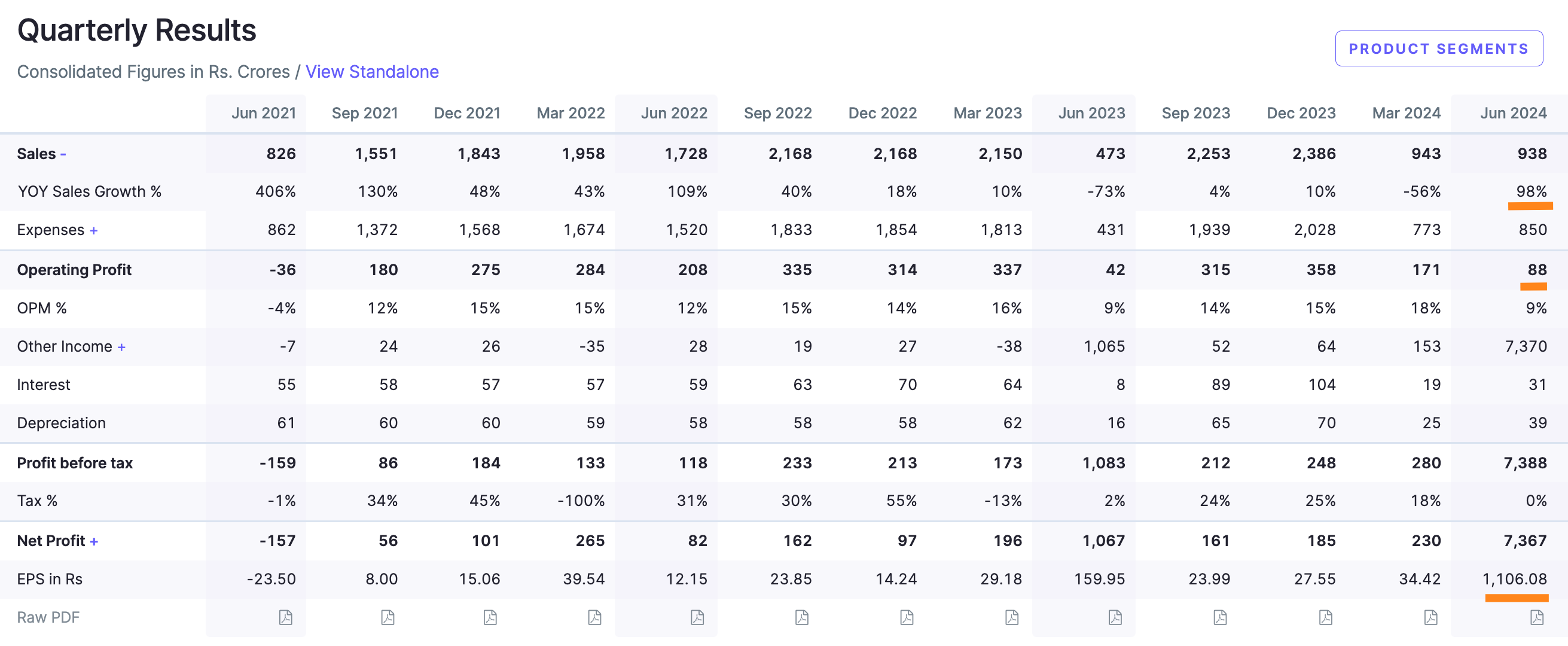 Note - The company reported significant sales decline in Q1 and Q4 in the last financial year (FY 2024). They have reported a turnaround in Q1 - FY 2025, further results to be monitored.