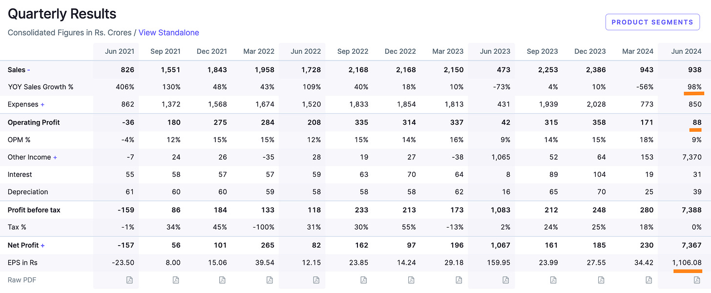 Strong quarterly sales growth of 98.1% in the latest quarter Q1-FY 2025.