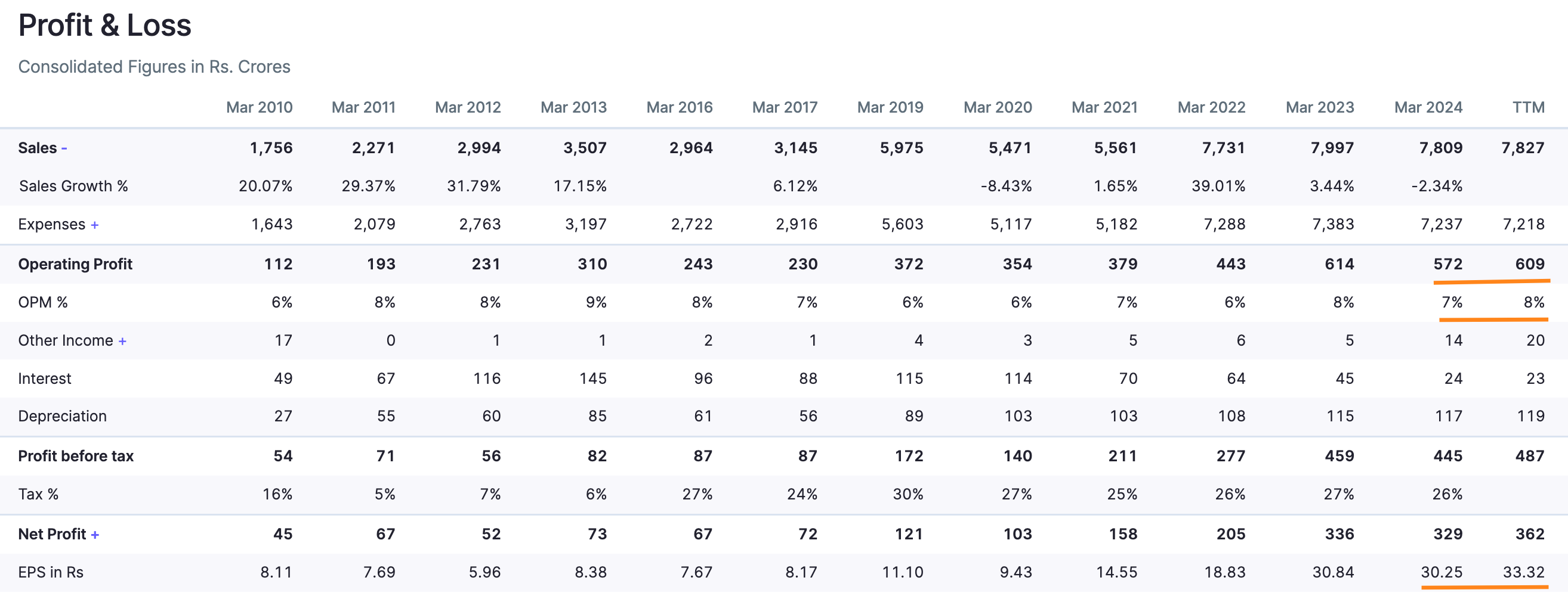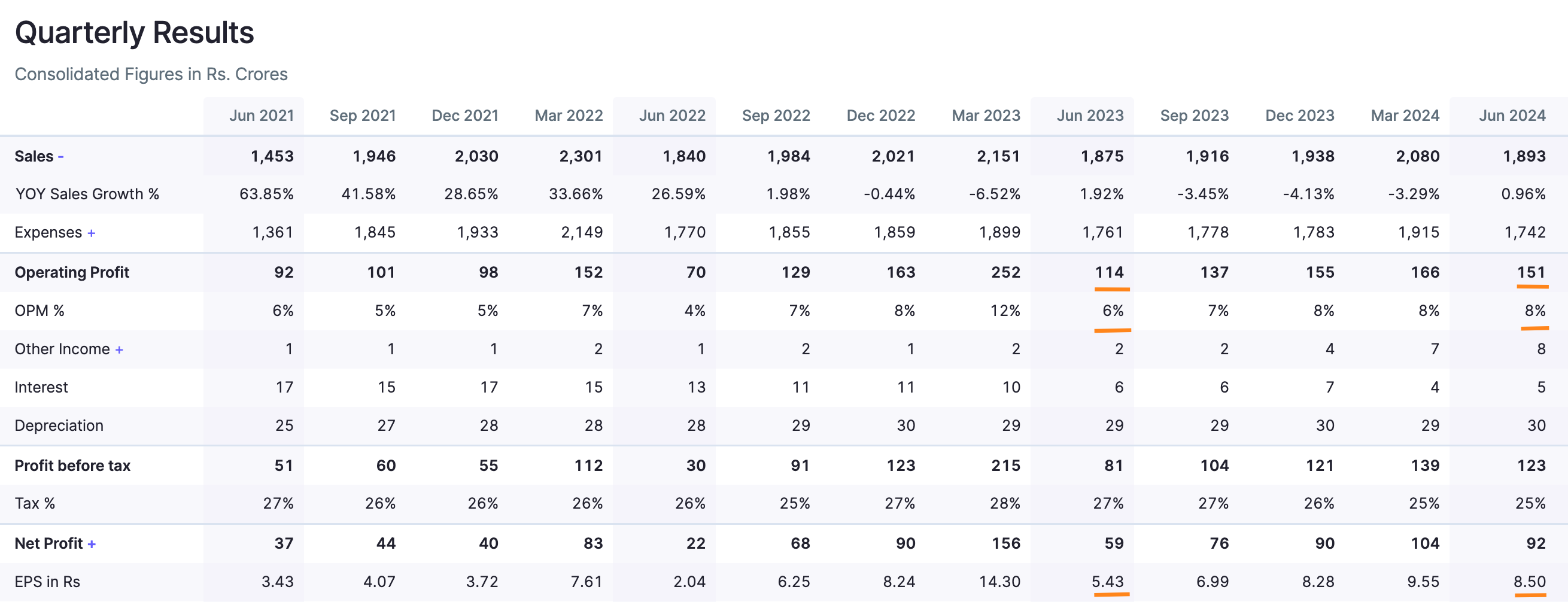 The trailing-twelve-month(TTM) operating profit is +6.4% and EPS is +10.14% is on account of improved margins.