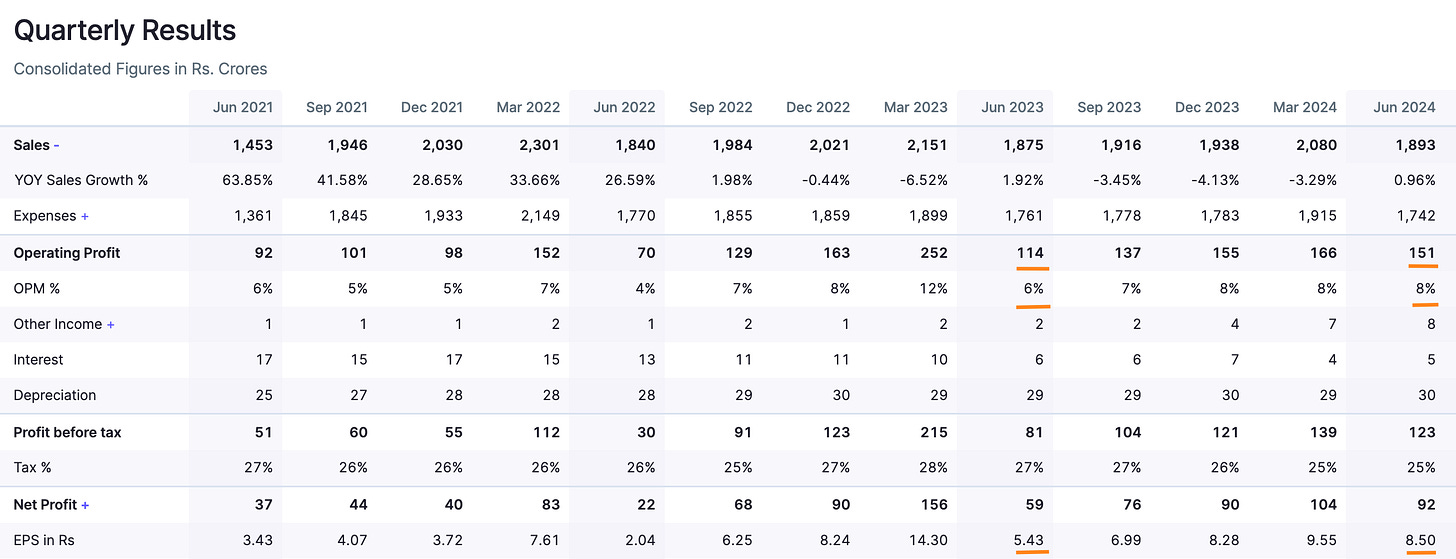 The sales growth was muted at 0.96%, but company improved the operating margins significantly by 33%.