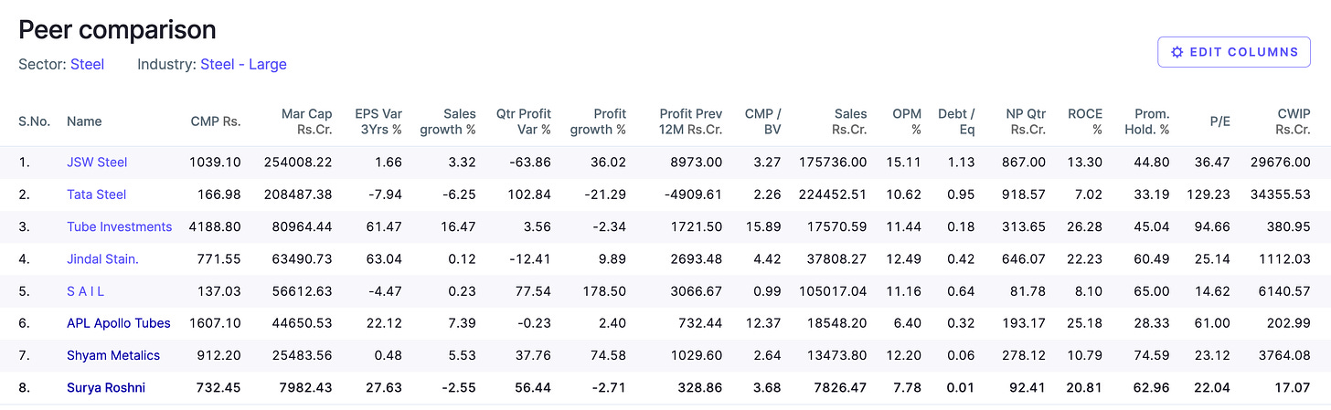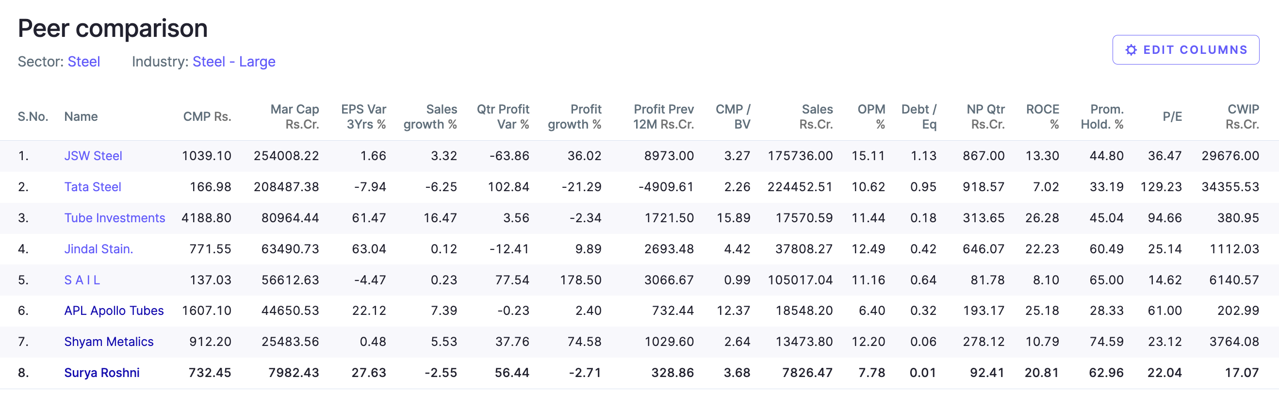 A peer in the similar product category of tubes - ‘APL Apollo Tubes Ltd’ has (compared to Surya Roshni Ltd) -