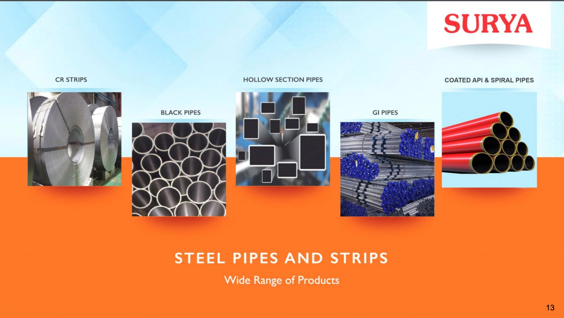 Established in 1973, ‘SURYA’ is one of the most respected and trusted brand in Steel Pipes, Lighting & Consumer Durables (FMEG) and PVC pipes in India and Globally.