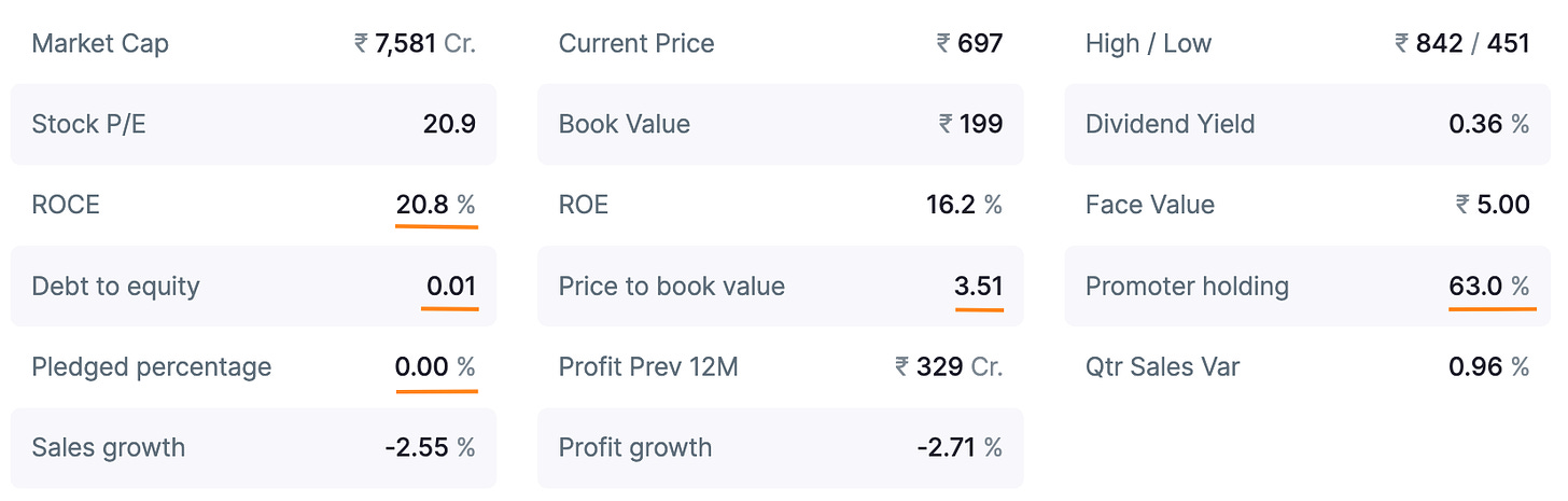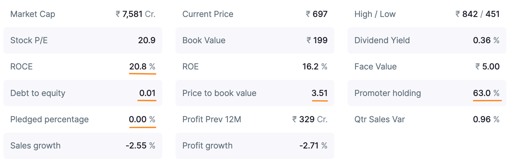 The company has a strong ROCE at 20.8%, and price to book value at 3.51.