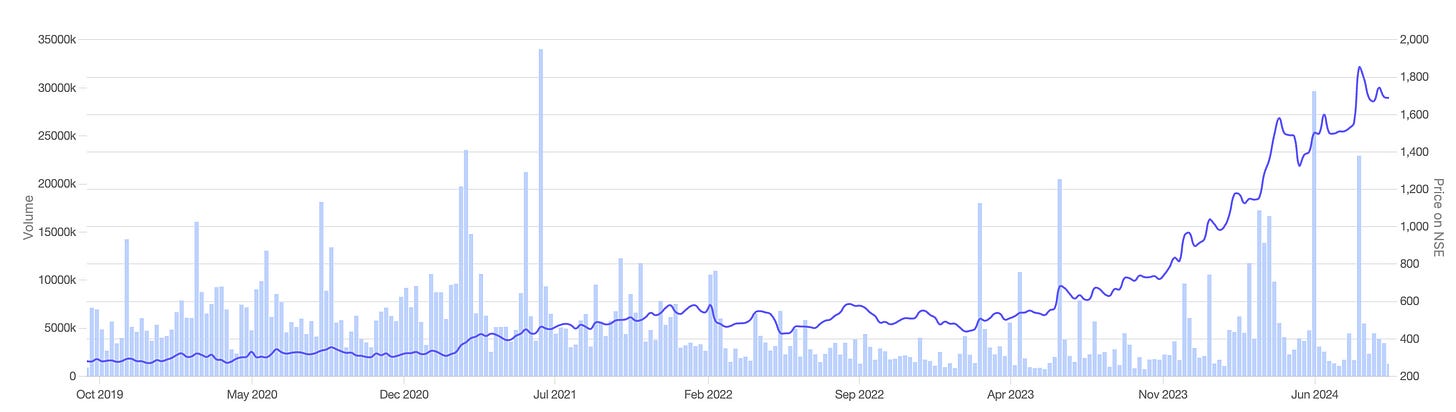 Institutional volume signs seen in the week of 29-July-2024 with a 13X spike in trading volumes.
