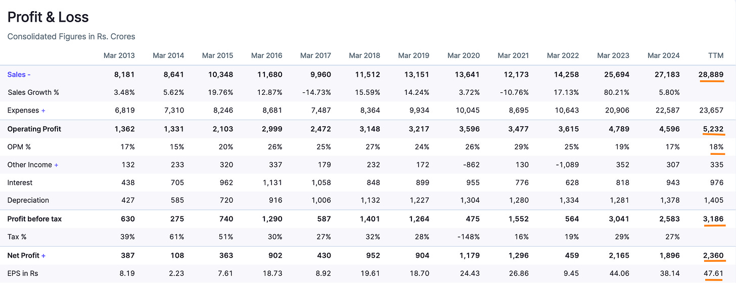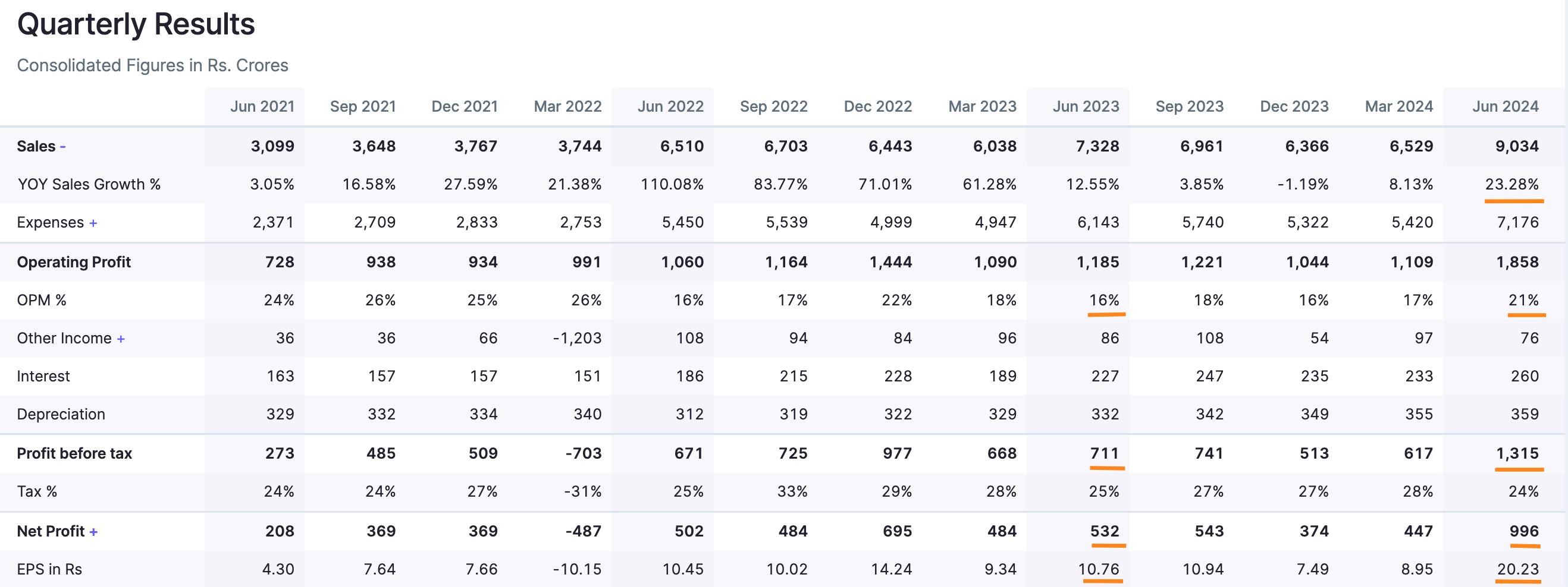 While the company posted a muted sales growth of 5.8% in FY 2024, the trailing twelve month(TTM) numbers are showing significant signs of growth -