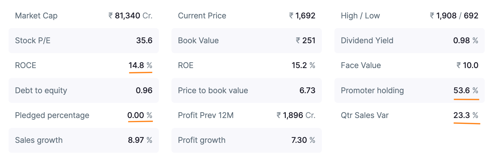 The company has a healthy ROCE of 14.8%, with pledged percentage 0%.